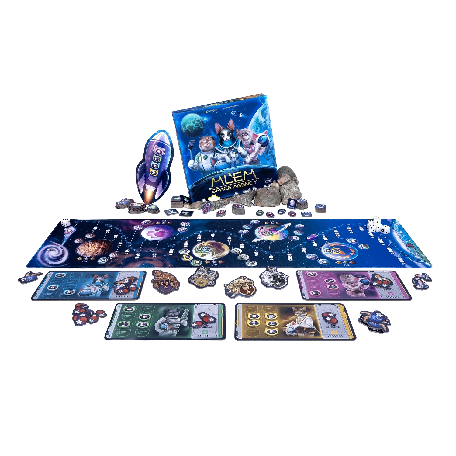 It's one small step for cats, one giant leap for catkind. In MLEM, you're launching a crew of catstronauts into space, rolling dice to push your rocket deeper into the solar system. But here's the catch - everyone's on the same ship, and every roll could end in a cosmic catastrophe. Do you bail out early and claim a safe moon, or ride the rocket toward glory (and possible fiery destruction)? Each cat has a unique ability, so loading the ship is half the strategy. Light enough to teach in five minutes, chaotic enough to have the whole table screaming at the dice.